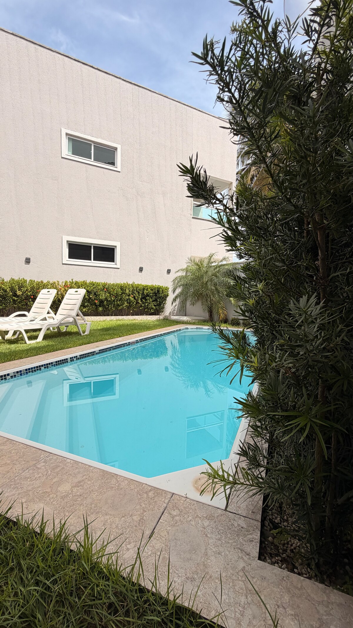 Relaxe com toda a família nesta acomodação tranquila. Dispõe de 4 quartos, sendo 2 suítes ( Todos com ar-condicionado), cozinha equipada , sala com TV, WI FI, piscina e deck com churrasqueira. Localizada na praia de Guajiru, rua principal, há 500m da praia. Próximo das praias de Flecheiras e Mundau. Próximos a comércios, restaurantes e farmácia.