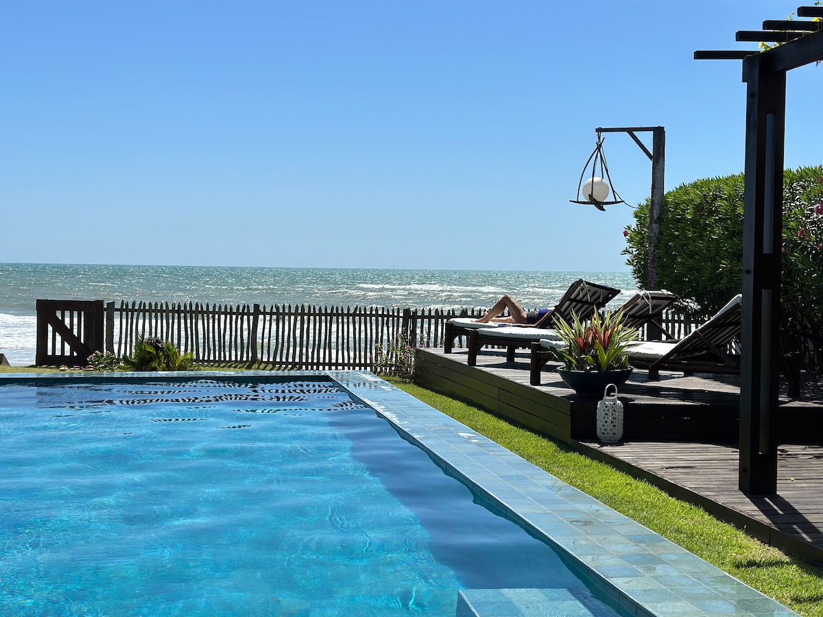 Exclusive beachfront house in Flecheiras, right next to Hotel Zorah Beach. Features 4 suites with air conditioning and blackout curtains, a private pool with outdoor shower, lawn with Hio Decor sun loungers, and covered parking. Fully equipped kitchen with dinnerware, glasses, and utensils. Perfect for those seeking comfort, privacy, and direct contact with nature. The ocean is literally at your doorstep!