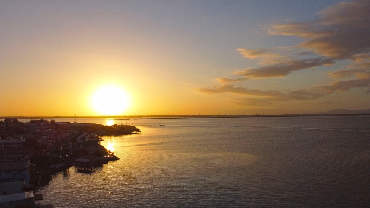 😊Aprecie o por do sol , vc tem uma vista exclusiva pela localização do AP. O AP possui localização e vista exclusiva. A direita o rio Tramandaí com uma praça nova e revitalizada ao fim da Av beira rio. A esquerda a Av Ubatuba de farias com praças e atividades ao ar livre e muito espaço p um bom chimarrão. A frente plataformas de pesca e ponte p o imbé com calçadão e praças. A 2 quadras vc encontra o centro de Tramandaí com todo o comércio *chuveiros a gás *elevadores *aquecedores