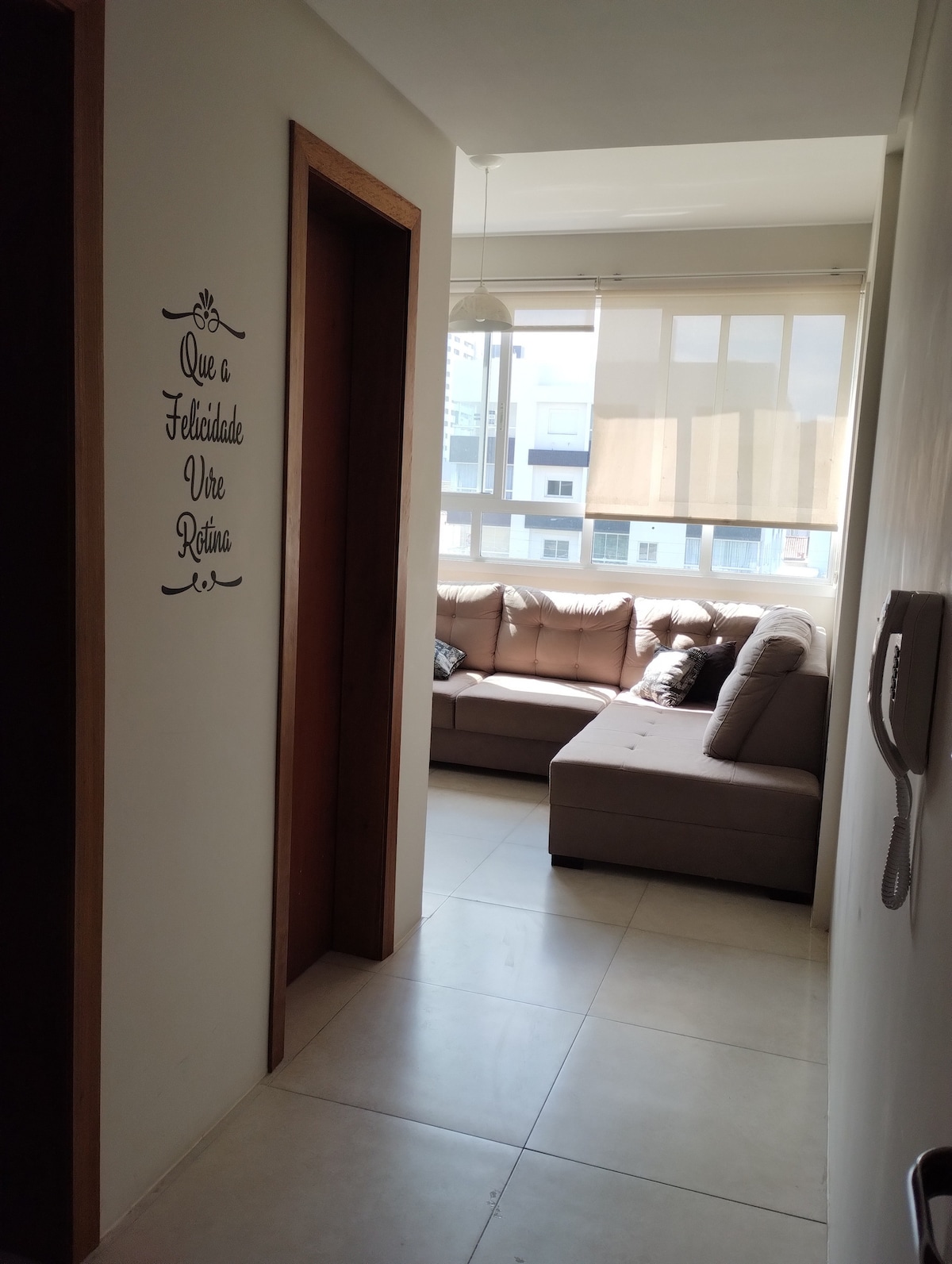 Excelente apto. de 01 dormitorio, sala, cozinha, 2 banheiros, muito bem equipado, próximo ao mar, ao Mercado Bistek, aos principais comércios e agências bancárias. Cozinha completa, refrigerador, louça, talheres, máquina lava e seca para roupas, ar condicionado na sala. Tv com streamings liberados, além de Tv por assinatura Claro App TV+. Quarto com cama de casal + cama auxiliar. Sofá-cama na sala. Elevador, garagem coberta, terraço, Sala de jogos, Hall de Entrada Decorado. Voltagem 220V