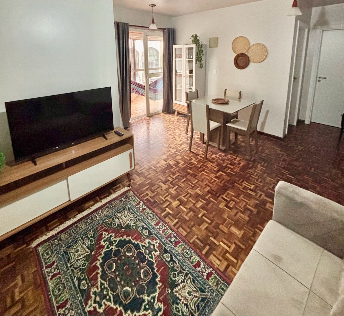Charmoso apartamento à beira mar de Tramandai, com decoração moderna e aconchegante, equipado com todos os utensílios necessários para uma boa estadia. Muito bem localizado,próximo ao centro,bares, restaurantes,mercados. O condomínio é grande e equipado com uma área de lazer central, com quadra poliesportiva, cancha de bocha, playground, salões de festa com churrasqueiras. Possui portaria 24 h, muito seguro para crianças com estacionamento rotativo interno. Pacote especial de Natal e ano novo.