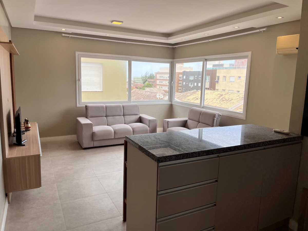 Apartamento a 250m da praia, pertinho do "Eu amo Tramandaí"! Próximo de mercados, farmácia e 700m do centrinho. Ideal para casais ou famílias pequenas. Perfeito para relaxar! Garagem coberta! Conta com 1 quarto com ar-condicionado, ventilador de teto, cama queen e cama de solteiro. Sala com sofá-cama, TV e ventilador de teto. Cozinha completa com eletrodomésticos novos, lavanderia com máquina de lavar.