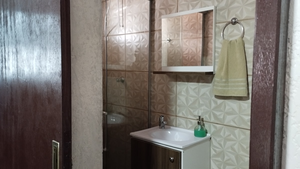Apartamento em pousada com banheiro privativo e cozinha completa para até 6 pessoas. O apartamento conta com ventilador, roupas de cama, travesseiros, cobertores e toalhas.