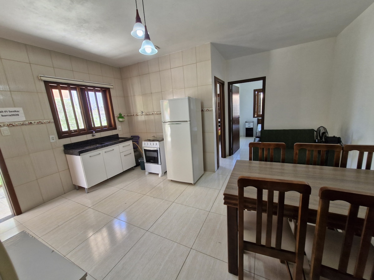cozinha aberta ( churrasqueira, microondas, torradeira, fogão a gás, talheres, pratos, copos, xicaras, panelas, travessas, geladeiras), quarto com cama queem e ventilador, quarto com cama de casal e ventilador, sala de estar com sofá cama, TV, wi-fi, banheiro social com chuveiro, maquina de lavar. Garagem coberta dois carros, patio fechado com portão eletrônico. Proximo a praia, proximo o centrinho de Nova Tramandaí.