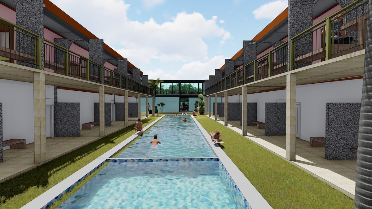 ที่พักที่เงียบสงบ เหมาะกับการพักผ่อน บรรยากาศเป็นธรรมชาติ สีเขียวสบายตา พร้อมสระน้ำภายในรีสอร์ต