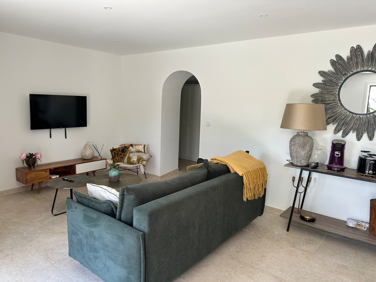 Beau studio meublé 21m² avec salle d'eau-WC, en rez de jardin d'une villa, avec terrasse privée 16m², dans village pittoresque du centre Var, à 30 km du bord de mer et des Gorges du Verdon. Cuisine intégrée et très bien équipée, lit 2 personnes 140x190, canapé 2 places convertible en méridienne ou en lit 1 place pour enfant. TV TNT SAT. Climatisation. Lave-linge et Lave-vaisselle, multiples équipements et produits fournis. Non fumeur / Pas d'animaux. Classement 2 étoiles aux Gîtes de France.