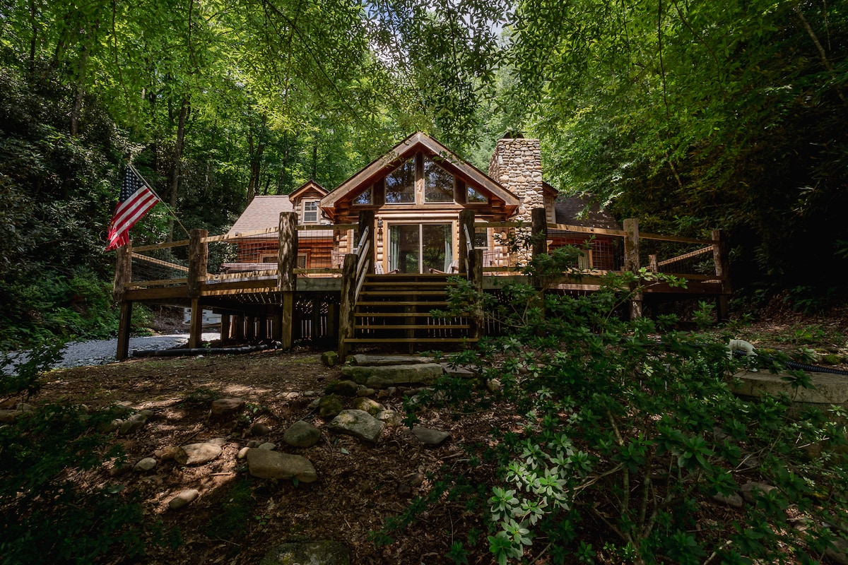 Welcome to Pisgah Waterfall Cabin, your escape nestled in the heart of the forest. Surrounded by towering trees, a flowing stream, and your very own private waterfall, this is where nature wraps around you like a cozy blanket. Wake up to birdsong, sip your morning coffee under a lush canopy, spend your evening by the fire. No Wi-Fi. No noise. No schedule. Just you, the trees, and the sound of water. Come experience the magic of the woods – we can't wait to host you 🌿