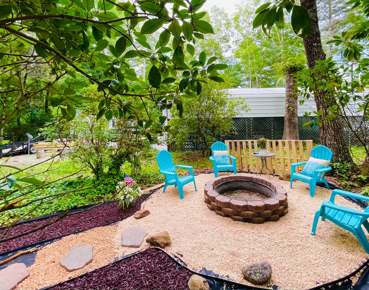 This beautiful 600 sq foot cottage is perfect for vacation or long weekend getaways! It is a one bedroom, queen bed, with a blow up mattress. Wifi, streaming tv, full kitchen, gas grill, and pet friendly! ( Max 2 pets) It has a nice firepit outside with fairy lights to enjoy your evenings. So much to do within minutes of the cottage from restaurants, hiking, biking, fishing, canoeing, pubs, and beautiful water falls. Asheville is abut an hour away and Hendersonville is approx. 50 minutes.