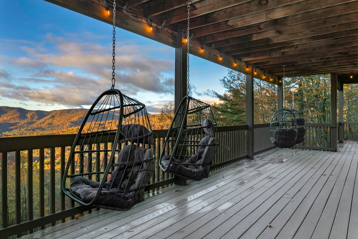 Welcome to Sleeping Bear, a luxury mountain retreat with breathtaking Blue Ridge views, cozy porch swings, a glowing fire pit, and a private game room with air hockey and shuffleboard. Guests enjoy Sapphire Valley Resort amenities—indoor and outdoor pools, hot tub, lake adventures, hiking trails, waterfalls, fitness center, golf, tennis, pickleball, zipline, winter skiing, and more. A 4BR/4.5BA lodge of comfort, charm, and unforgettable mountain magic.