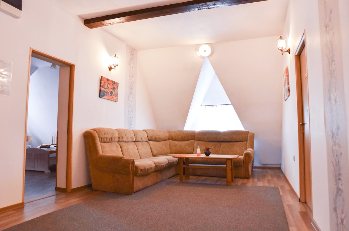 Make yourself at home at our family's private guest house that's right in the heart of the city in one of Brasov’s superb historic buildings. You'll enjoy an authentic local experience staying in this lovingly restored traditional attic retreat with private bathroom and a rooftop balcony that features a romantic view over Mount Tampa and the neighboring rooftops. Also provided for your convenience: secure parking, breakfast bar, spacious lounge w/ rooftop terrace, and private fitness studio.