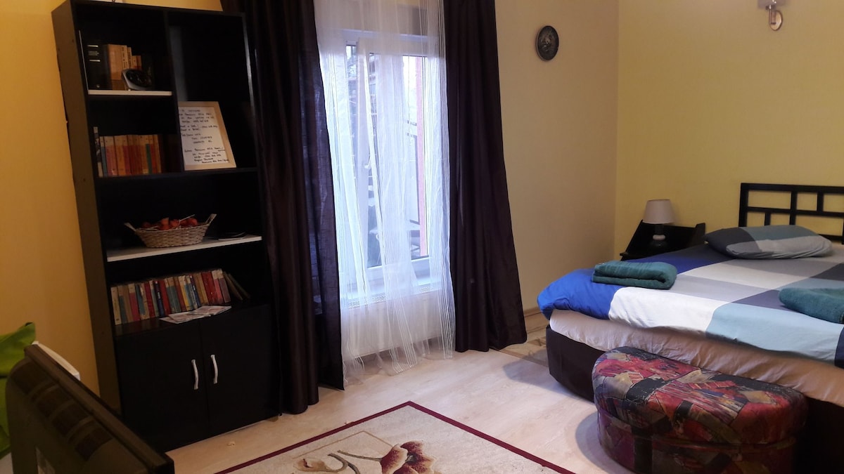 Cosy Studio is ideal for two people. Welcoming atmosphere combined with cozy space guarantees a relaxing stay! Facilities include: double bed Mezzanine | Dining area | LED TV | Full bathroom (shower, hairdryer, hygiene items) | Fully equipped kitchen High ceilings and beautiful carvings on window frames and doors dating from the late nineteenth century give the studio an authentic atmosphere full of history. PRICES UP TO 2 PERSON - 63 EURO/ NIGHT