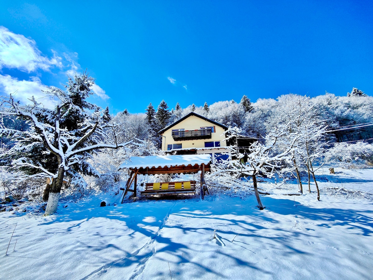NEW - Jacuzzi tub - 200 LEI/2 day stay The cabin is located in the beautiful village of Dealu Negru (Black Hill), 1 hour drive from the busy and growing city of Cluj-Napoca. Growing up on the property, the cabin represents a lifelong dream, built by the hands of my hard working father, whose talent you will notice in details all around the place (pay attention to the ceiling in particular, where you can notice mirrored wood panes, layed out carefully to represent the lenght of the tree).