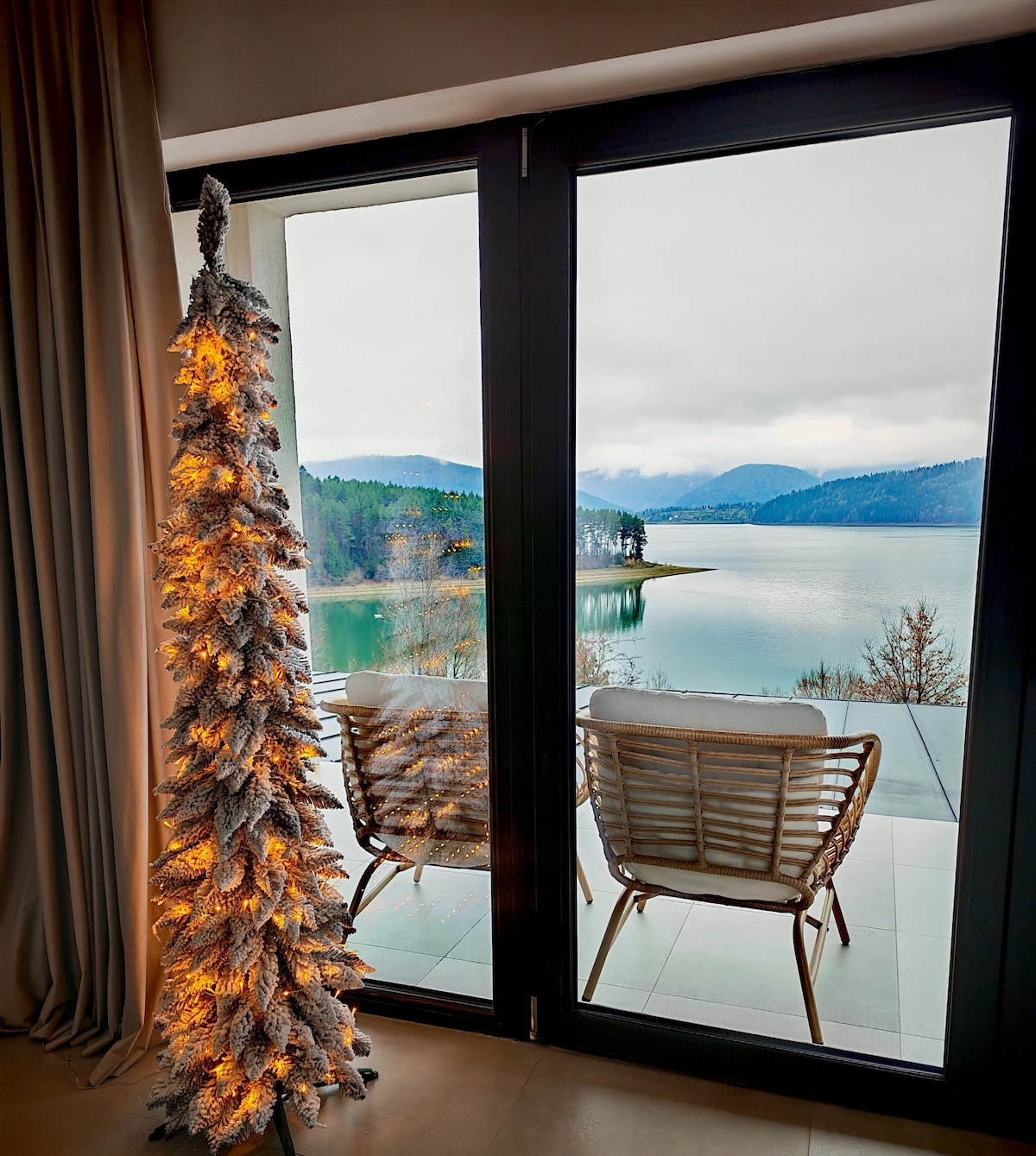 Lacul , muntii , padurea , aerul si linistea fac din Villa Aqualina un loc feeric care te steapta sa iti gasesti linistea! Descopera bucataria completa si modern utilata , livingul generos care cuprinde atat spatiu pentru luat masa cat si zona de recreere, cele 7 camere dotate fiecare cu pat dublu ,tv, wi-fi gratuit, baie privata si balcon cu vedere la lac 7 camere duble Terasa cu vedere la lac Ciubar Masa de ping-pong Spatiu de joaca Plimbari- Atv-ul contra cost Biciclete, hidrobicicle