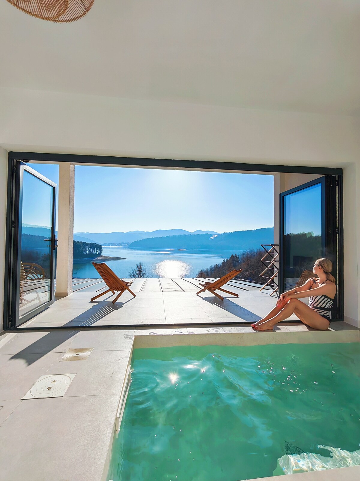 The modern apartments are located within the French Villa House in a building with 2 other identical apartments. Located by the lake, these apartments are perfect for a stay in Colibița. Access to the lake is immediate. Anchored pontoon near the property offers easy entry and exit from the water, as well as fishing or kayaking. Ideal for baths, hiking through the forest. Access is by car. Private parking, kayaks, pontoon are available.