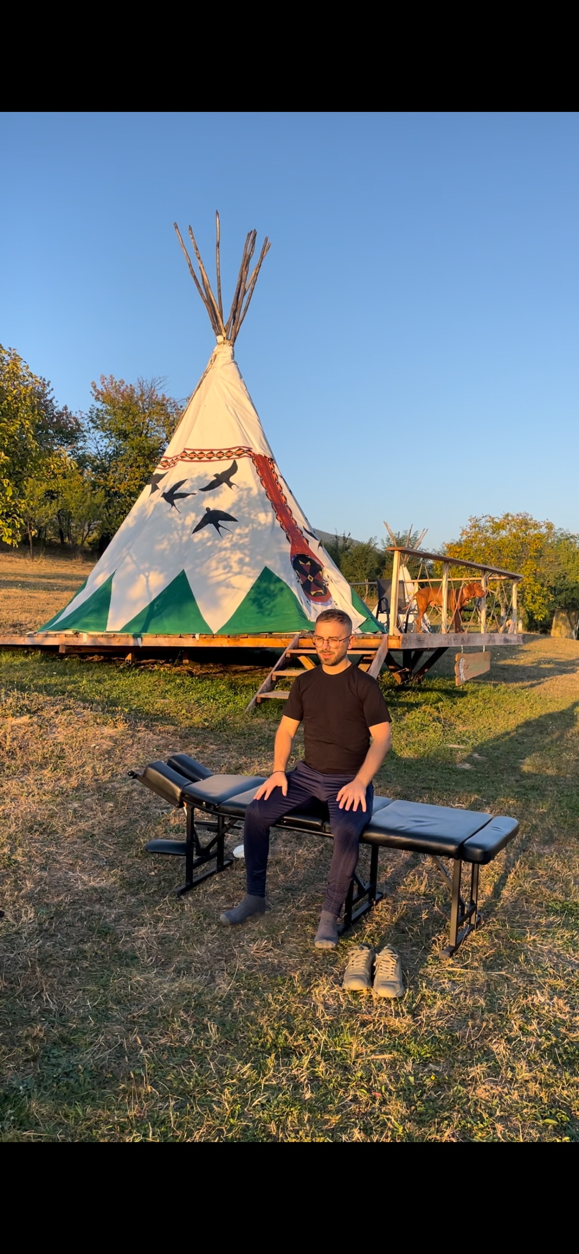 Bucură-te de sunetele naturii când stai în această locuință unică. Cortul Cherokee Tee-Pee de la Langaland Glamping oferă o experiență autentică, off-grid, în mijlocul naturii, ideală pentru cei care caută liniște și deconectare. Amplasat pe dealurile Langa, cortul este intim și confortabil. Experiența include mic dejun și cină gătite zilnic de chef Anca, cu ingrediente locale. Avem animale și produse proprii, proaspete, din propria gospodărie. Acces la băi comune curate. Pet-friendly.