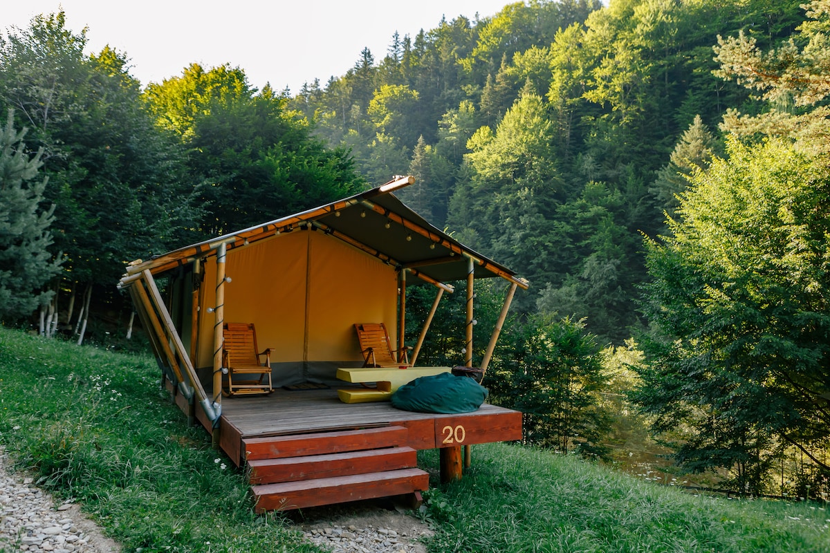 Our glamping tents offer the perfect chance to experience the wilderness in a cozy environment. Info: - the net is available only at tent #3 - once the booking is complete, you will receive a guide - from the meeting point (where you can choose to leave your car), there’s a 2.8km journey up to the tents - you can either walk to your tent, drive (if you’ve got an SUV or 4x4 car) or we provide transport at check-in & check-out (for free, specified timeframe) - make sure you bring enough food