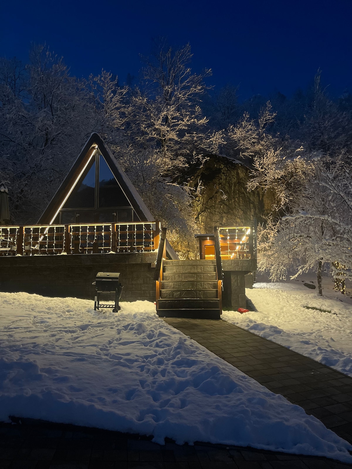 𝓒𝓸𝔃𝔂 𝓒𝓪𝓫𝓲𝓷 𝓐-𝓯𝓻𝓪𝓶𝓮 Located in Petrosani, Hunedoara county, at the base of Parang mountain, near Pestera Bolii, on Dn66. The cabin has two double bedrooms, a modern bathroom, open space kitchen, fully equipped, living room with extendable sofa, large terrace. For a comfortable stay, the cabin has underfloor heating. The cabin offers its own sauna, fiberglass tub with hydromassage. The sauna is included in the price