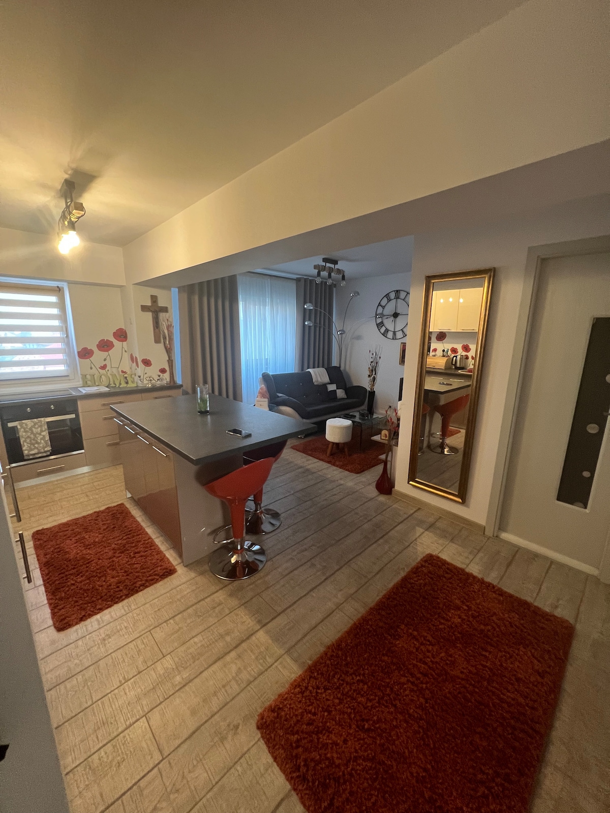 Va punem la dispozitie un apartament in centrul Sibiului, la 400 m de hotell Ramada si de centrul pietonal, avand un dormitor si terasa, in total de 70 mp format din: un dormitor mare cu pat dublu, o canapea și un fotoliu, cu semineu si tv cu diagonala 138 cm, o bucatarie dotata cu plita electrica, prăjitor pâine, fierbator si cafetiera, tv, baie cu dus modern, uscator par, tv si de asemenea o terasa de 30 mp dotata cu fotolii, canapea, șezlonguri și tv, cu vedere panoramica catre oras.