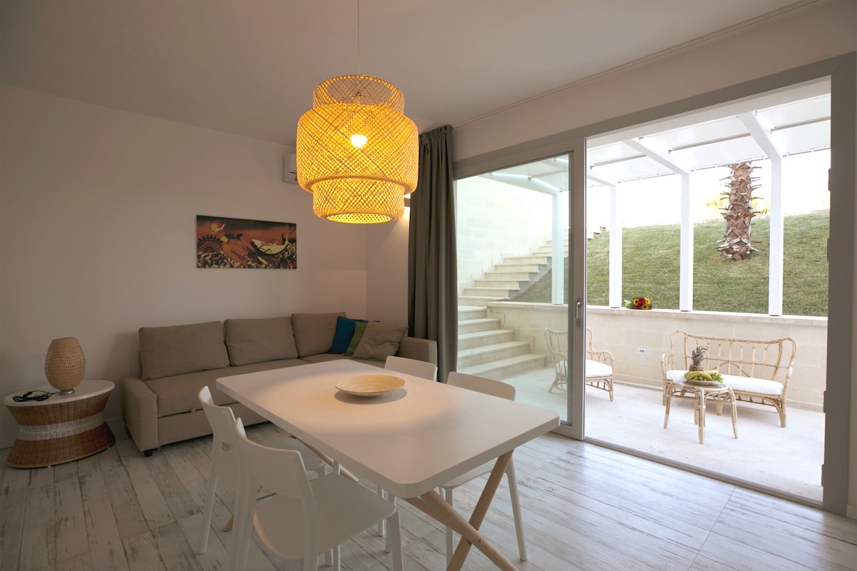 What a great place! An ancient land belonged to our grandparents, hosts these two beautiful studios, surrounded by lush greenery, fruit and olive trees. Silence, peace, nature. Strategic location, near the sea and a short walk from the village.