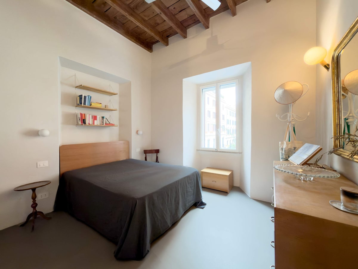 Bring the past to life in this recently renovated apartment located in the most central part of Trastevere. It is characterized by a beautiful original ceiling with antique wooden beams restored to their natural honey color, a mezzanine with crystal inserts, XIXth century antique furniture, internal views of a beautiful garden below. Is a cute combination of the charm of the past with the inclusion of well-chosen modern elements which, will make your stay both fascinating and comfortable