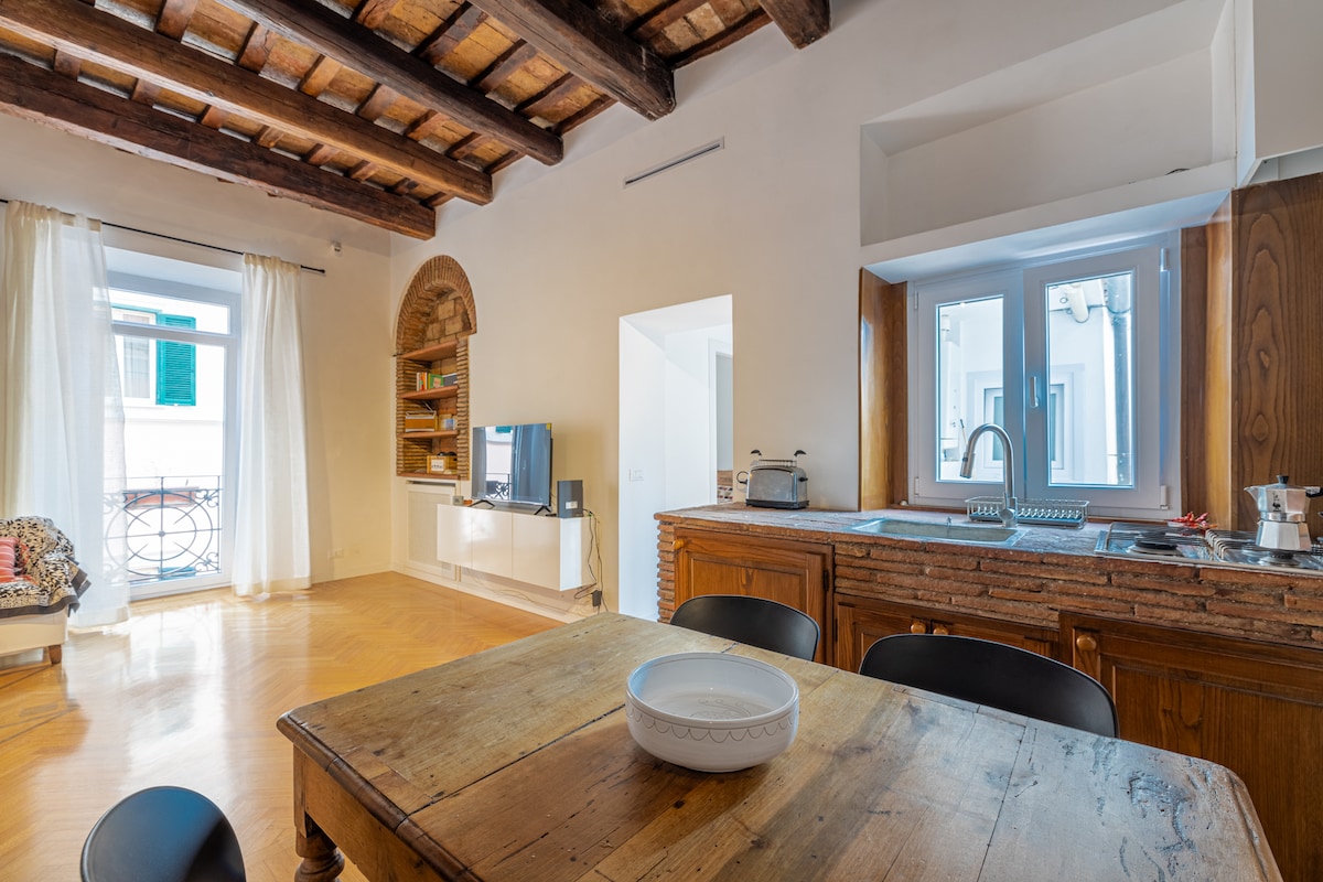 Your home away from home. Romantic and bright apartment in the heart of the beautiful Trastevere district, in the centre of Rome. Located on the 4th floor by elevator. One double bedroom, one bathroom, living room with lovely private balcony, dining table and fully equipped kitchen. Fast free internet wi-fi, air conditioning and heating. Smart TV 4K with Internet connection (Netflix, YouTube and Amazon Prime channels included). Ideal for a couple. You are all heartily welcome to my place :)!