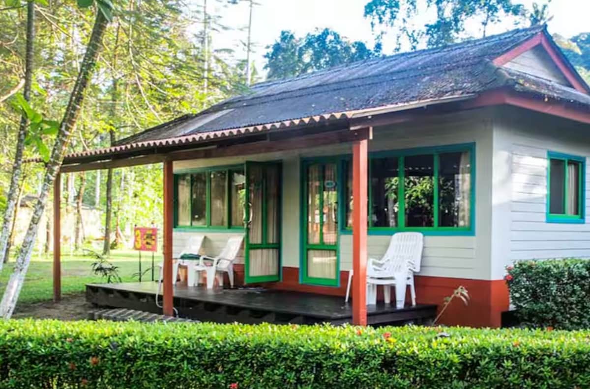 NEW for the 24/25 season, providing more accommodation. A Very nice, quiet, spacious family sized apartment, with seperate dining/ work area and kitchen. 5 foot and 3 foot beds also a Thai style floor mattress available. The room is very clean and fresh, with new air con and fan available, if you do not like air con. Our whole resort is set in beautiful, clean gardens. Welcome to our home.