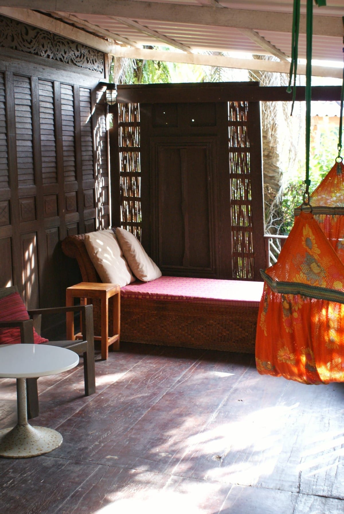 A warm welcome to the Pink Kangaroo Bungalows from Dick (Australian) and Wan (Thai). This bungalow has been crafted to offer a truly tropical stay, with a beautiful surrounding of palm trees and a calming creek. If you're after a serene stay or a zen working/living space - this location is ideal! You'll experience a truly tranquil and unique stay with all the comforts that you could need. A beach of golden sands and crystal clear waters is only a hop, skip and short moped ride away (700m).