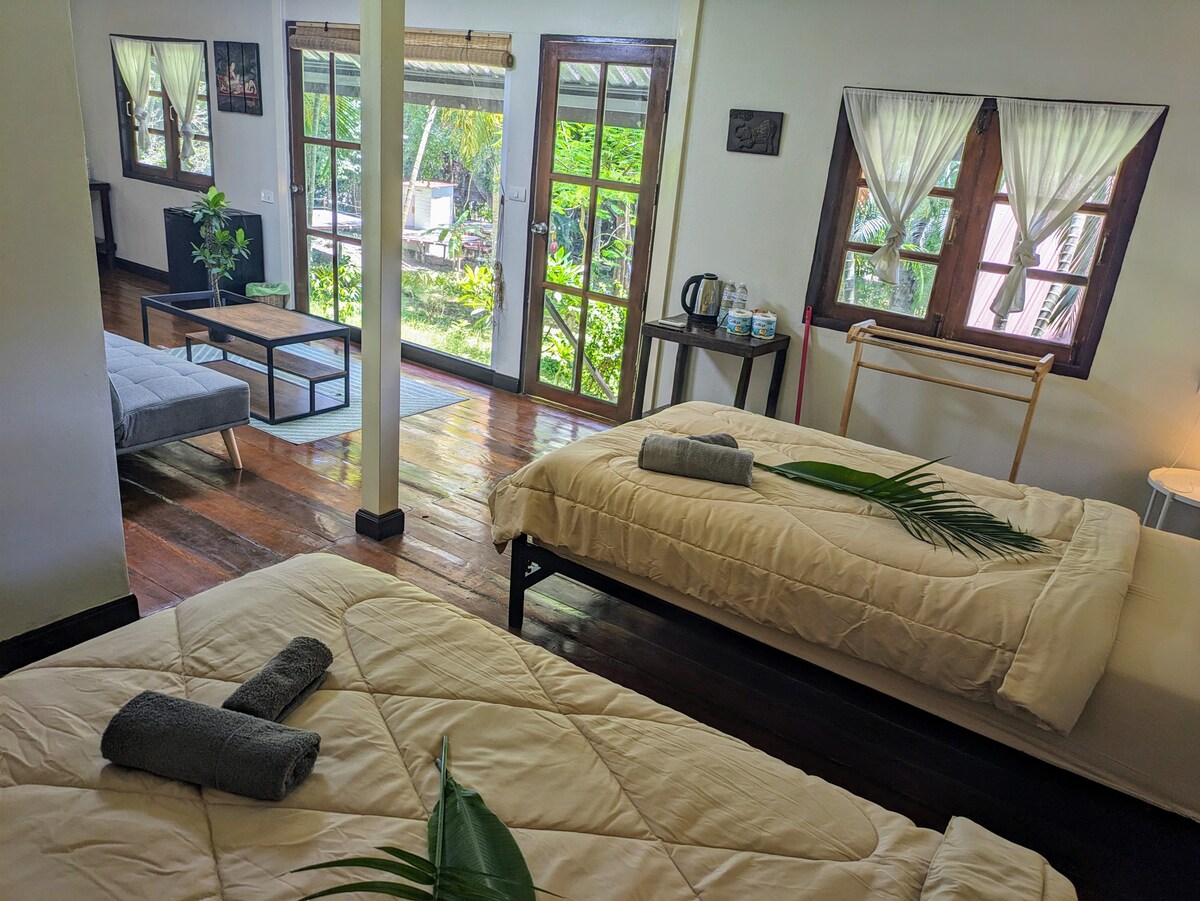 Escape to your own tropical sanctuary in our beautifully designed Private Villa, surrounded by lush greenery and the peaceful sounds of nature. Perfect for couples or solo travelers seeking privacy and tranquility, this villa combines modern comfort with the serene beauty of Koh Chang.