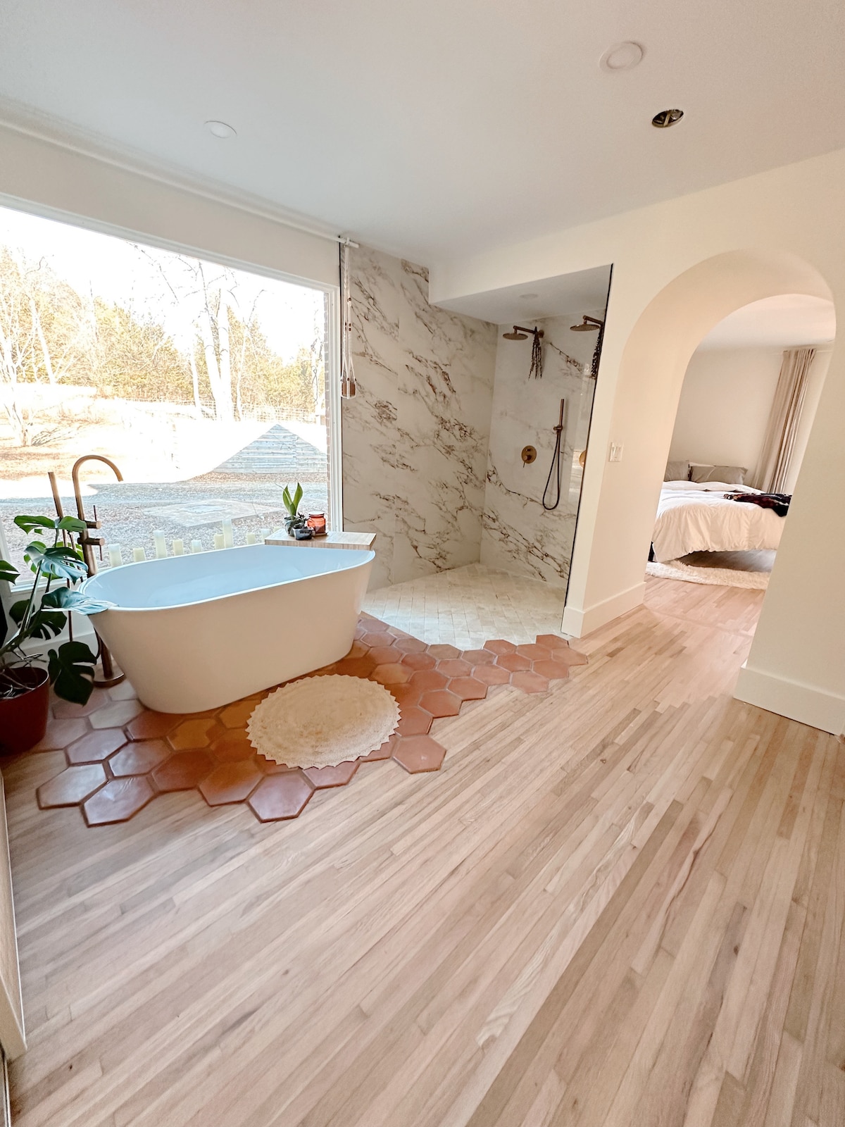 One bedroom suite, under the sun-room with 4 windows overlooking the private garden; private entrance and completely separate from the main house; Individual mini split A/C unit in suite for your ultimate comfort; Huge working desk with plenty natural lights. Enjoy your morning tea or coffee in the garden; Relaxing and reading on the custom build banquette; super comfy Queen Size bed (Brand new mattress as of March 2024); separate area of bathroom, shower, sink and KITCHENETTE.