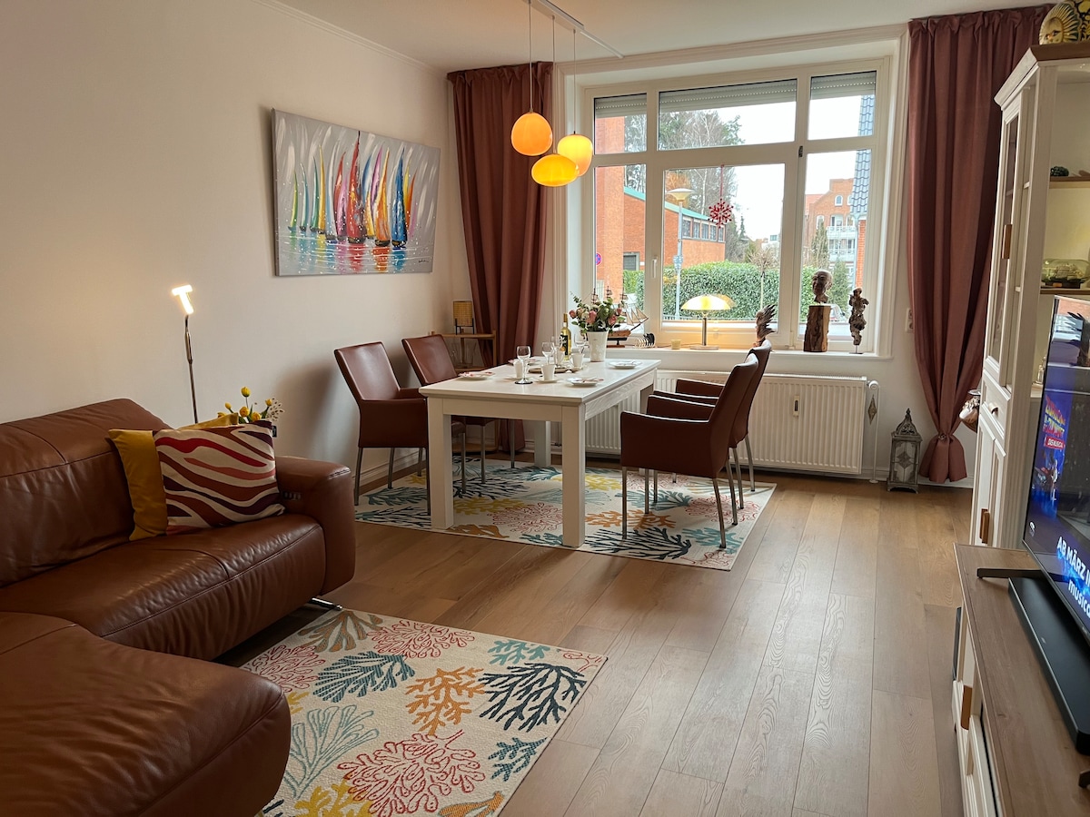 In our lovingly furnished apartment you can relax wonderfully - everything is available to feel comfortable - music, fresh bed linen, space to tell, a spacious balcony for breakfast in the sun, sun set in a beach chair, books and games, internet access ..... The bathroom and toilet has just been redesigned with floor level access to the shower and glass partition. Everything is freshly painted light grey and a new design floor has been laid throughout the apartment.