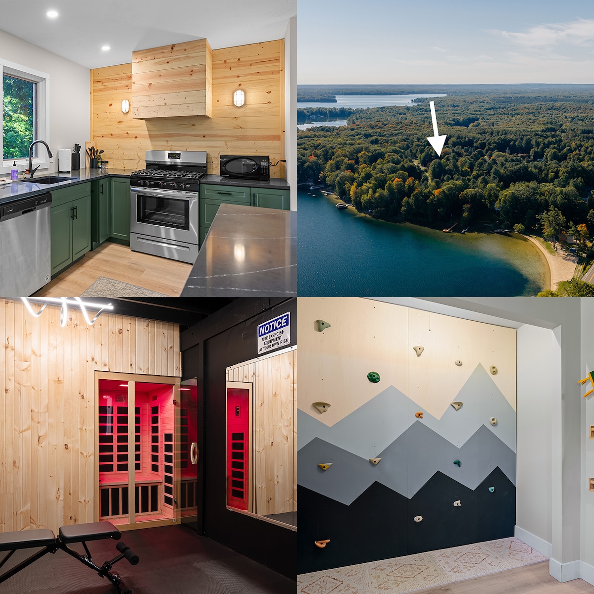 Enjoy this 4 bed/3 bath getaway home on Spider Lake with 60 feet of private beach: an absolutely beautiful setting from sunrise to sunset and the pontoon boat at no extra cost in June, July, Aug, and Sept. Also, kayaks and paddle boats provided free of charge. We are close to the island/sand bar but still quiet at the house. It's the perfect place to stay in any season, only 11.5 miles from downtown the luxuries of downtown Traverse City, and well-protected from claustrophobic downtown traffic.