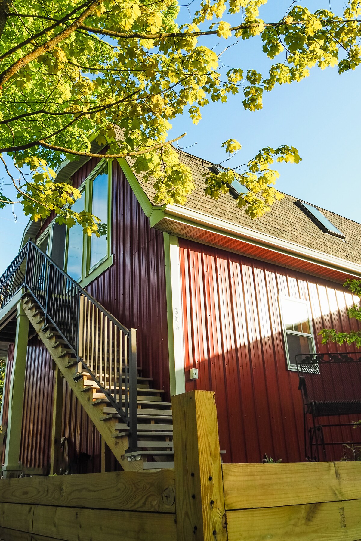 New build loft apartment that feels like a tree house with its full wall of windows looking into the leaves, minutes by foot from downtown shops and the beach. Enjoy coffee on the New Orleans-style balcony and peeks of Suttons Bay over a public park directly across the street. Enjoy as a private couple's retreat, or open the queen sleeper and two Murphy beds for a friend getaway or family vacation. Cozy fireplace and steam shower make it a year-round retreat. Welcoming to all!