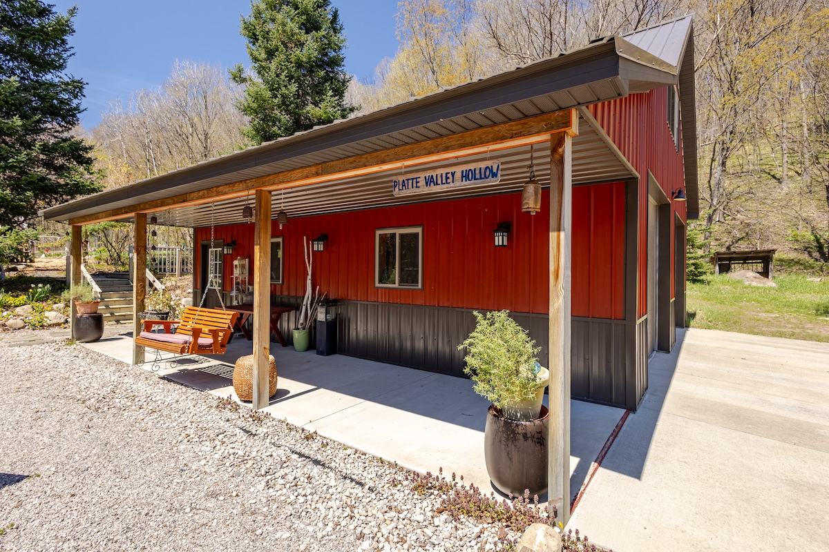 Located in Platte River valley, surrounded by beautiful hardwood hills. Perfect for the outdoor enthusiasts and reflecting/relaxing guests alike. Four season fun: Fall colors; xc ski trails right out the door; 5 min walk to pristine Platte River; fire pit, 20 min to Sleeping Bear Dunes National Lakeshore; 20 min to Frankfort; 15 min to Interlochen Academy for the Arts; 30 min to Traverse City, 15 min to Crystal Mountain Resort for downhill skiing/golf; close to Lake Michigan beaches.