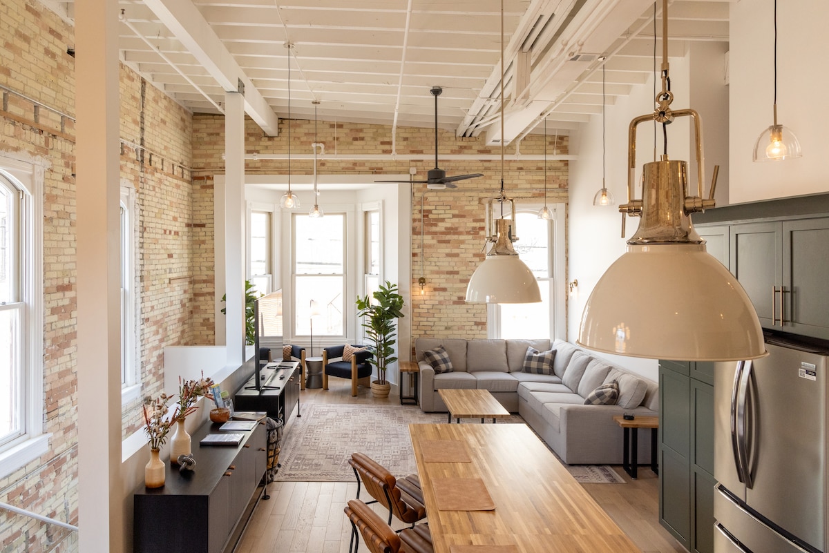 Welcome to our stylish loft in the vibrant 8th Street & Garfield neighborhood! Just minutes from downtown Traverse City and pristine beaches, this cozy retreat features a king bed, 2 TVs, a queen sleeper, and a spacious layout with cool, modern décor. Guests love the inviting vibe, perfect for a romantic escape or small family getaway. Enjoy two great restaurants and a fantastic bakery just steps away. Relax, recharge, and experience the best of TC from our quiet, convenient location.