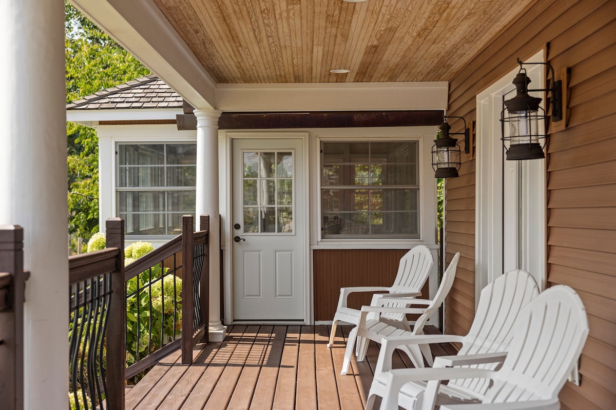 The apartment has a kitchen, bath, sitting area, patio & free parking. Working remotely? Do it here with strong internet and start your vaca by 1pm. Two blocks from downtown, you can literally walk to dinner, bars, and neighborhood shops. For health/safety, we follow Airbnb’s sanitation policy and contactless check in. We’ve hosted anniversary couples, sweet families, writer's workshops, Buddhist monks, and more. Come write your very own pure MI story!