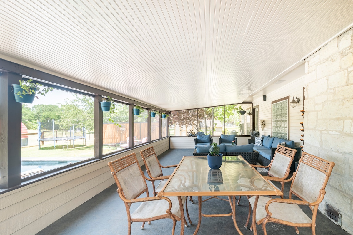 Relax at this private Hill Country retreat surrounded by nature, just a short drive from Austin. Enjoy a peaceful stay with access to a shared pool and hot tub, scenic walking trails, and abundant wildlife. The space is designed for comfort and relaxation, perfect for couples or solo travelers looking to unwind, explore the outdoors, and enjoy a quiet Texas getaway while still being close to city attractions. Pet the goats, emus and chickens!