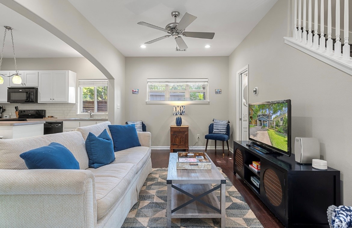 Discover a space to unwind while being close to all the action. Featuring a spacious open-plan living area, cozy furnishings, an upstairs loft bedroom (with downstairs sofa bed), a screened-in porch, and a tree-covered BBQ patio area. Guests love to stretch out on our shaded deck or walk to the best restaurants and coffee shops in the famous SOCO neighborhood. Read our reviews… your search stops here!