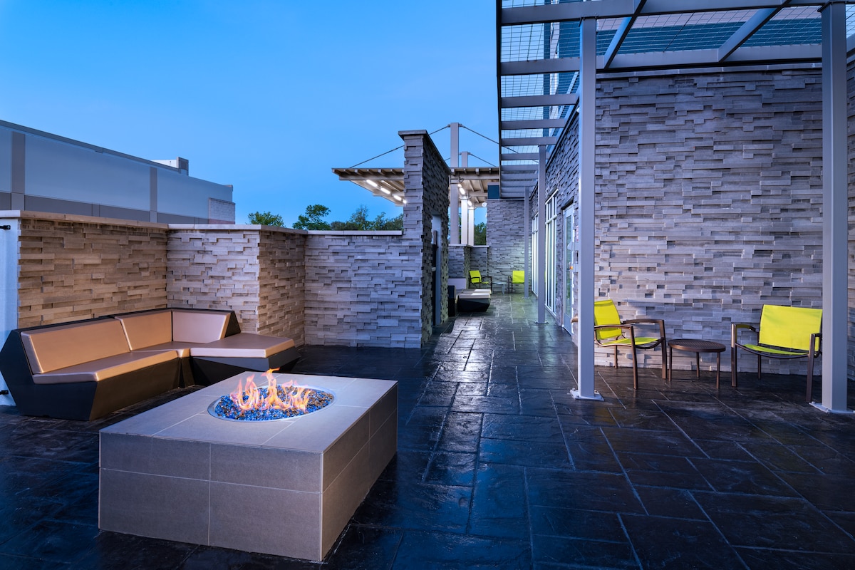 靠近德克萨斯大学奥斯汀分校,带屋顶泳池、酒吧和餐厅。