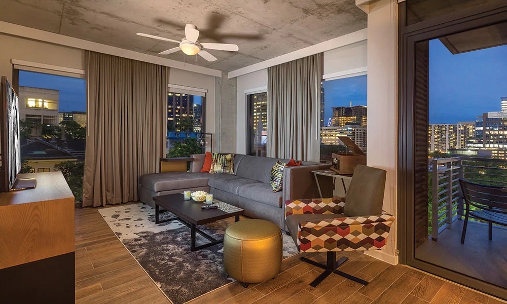 Austin is known for its quirky nature and hodgepodge of musical and cultural tastes — and you can see it all from the comfort of the resort. You’re conveniently located just minutes from local attractions, diverse eateries, and vibrant venues. Primary guest must be 21 yrs old to check in. Pictures are stock photos and may not be exact room. Resort takes security deposit at check in.
