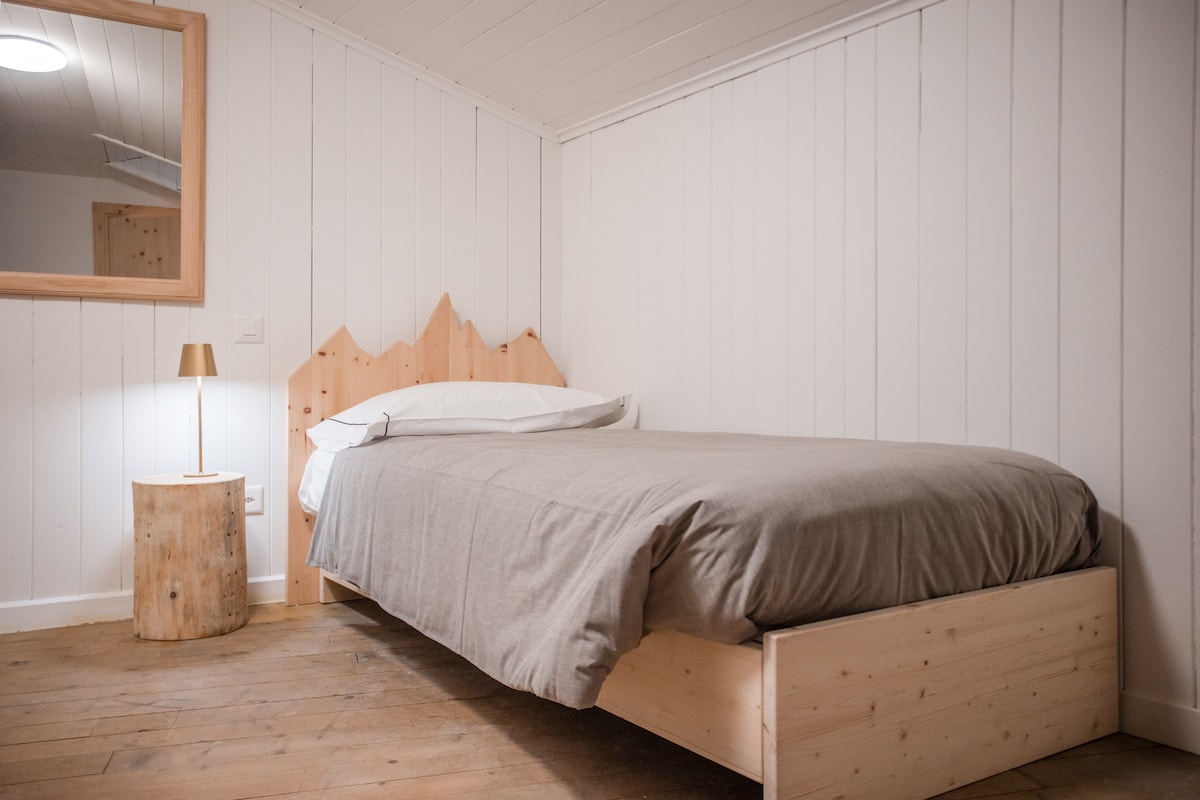 This room at Hotel Vallecetta offers a cozy atmosphere, featuring alpine-style décor with wooden furnishings. Each room has a private bathroom with a shower, hairdryer, Wi-Fi, and satellite TV. The design blends traditional alpine charm with modern comforts, creating a relaxing space ideal for couples, with extra beds available for families. A generous breakfast is always included ensuring a perfect day!