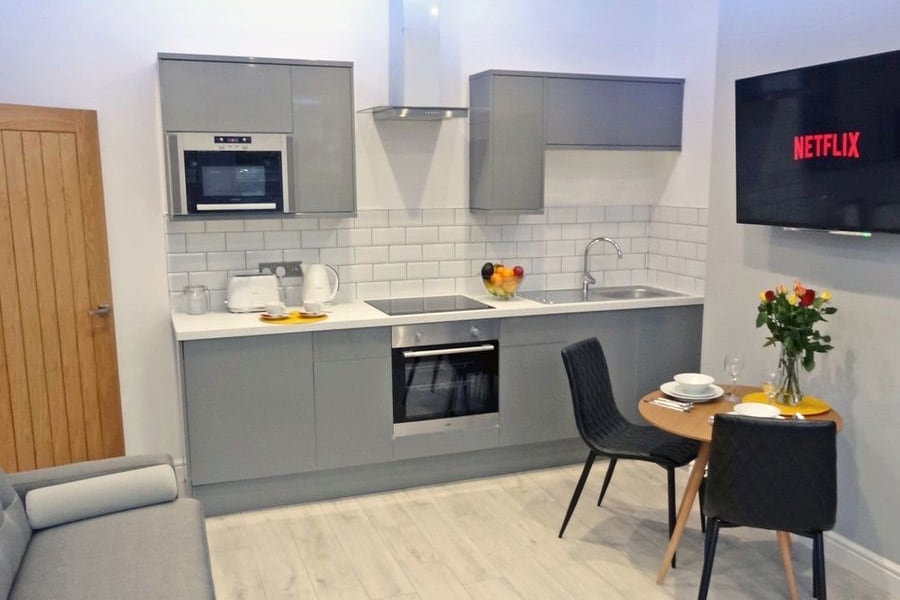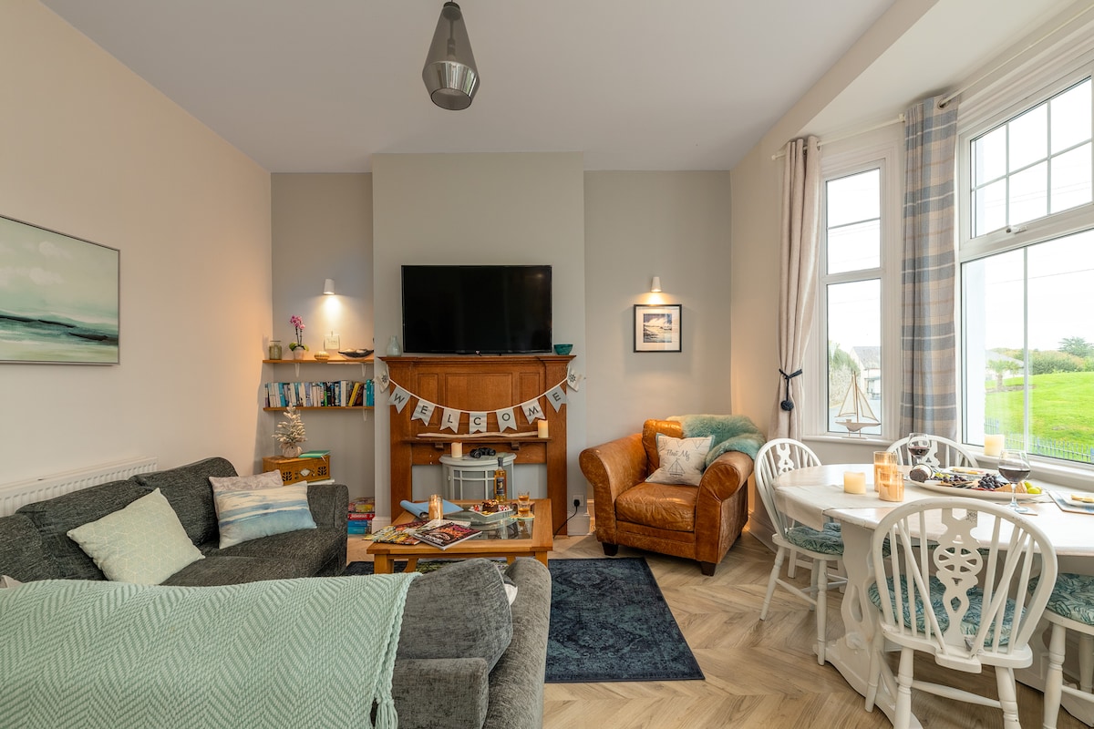 The Crows Nest is a top floor apartment with panoramic beach and sea views making it the perfect seaside home for a family of up to 4 people. A 100m walk to the beach with storage for all those watersports toys in the garage. Full electric central heating for a cosy stay in all seasons. Those extra features including a Nespresso machine, smart TV, fast wifi, window seat and modern LED ceiling lights help to make it an extra special holiday. We have a washing machine in the garage for guests use.