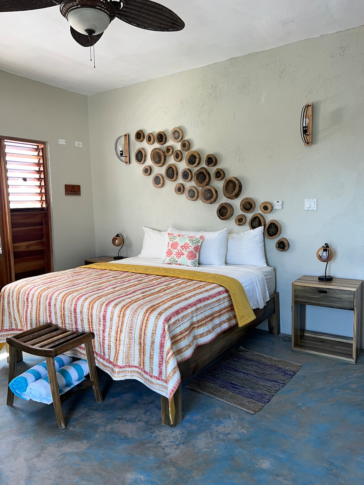 Sunsets_at_Tiffanys IG for video tour. From the moment you arrive, you'll feel at home in our tropical oasis. Located just a few moments' walk to the sandy shores in the heart of Treasure Beach. A loft-style home with amazing 6 meter/20 ft ceilings and a rooftop patio with 360-degree views of the Caribbean Sea and mountains. Sunsets_at_Tiffanys features stylishly eclectic décor that makes you feel you've escaped the mundane of everyday life. Located a short boat ride from Lloyd's Pelican Bar.