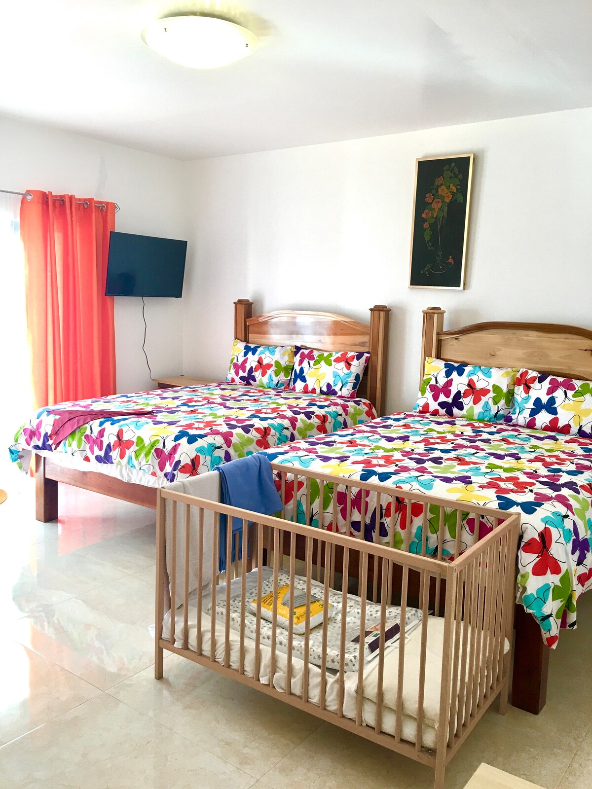 Welcome to our enchanting guest house. Our elegantly appointed rooms offer a sanctuary of relaxation with luxurious amenities like two queen-size beds, private showers, A/C, and TV. Forget your worries in this spacious, serene space, which is great for a quick getaway.