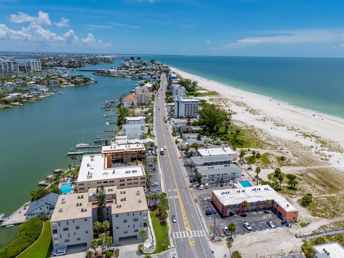 This luxury condo features 2 private balconies, w/ spectacular ocean & marina views. It's stylish decor, meticulously picked quality & comfortable furnishing/accessories are sure to please. It’s conveniently located just across the street from the pristine white sands and sunsets of the Gulf of Mexico. It is adjacent to the #1 tourist destination in the county, John's Pass Village. The property offers a heated swimming pool, hot tub, fitness room & event center.