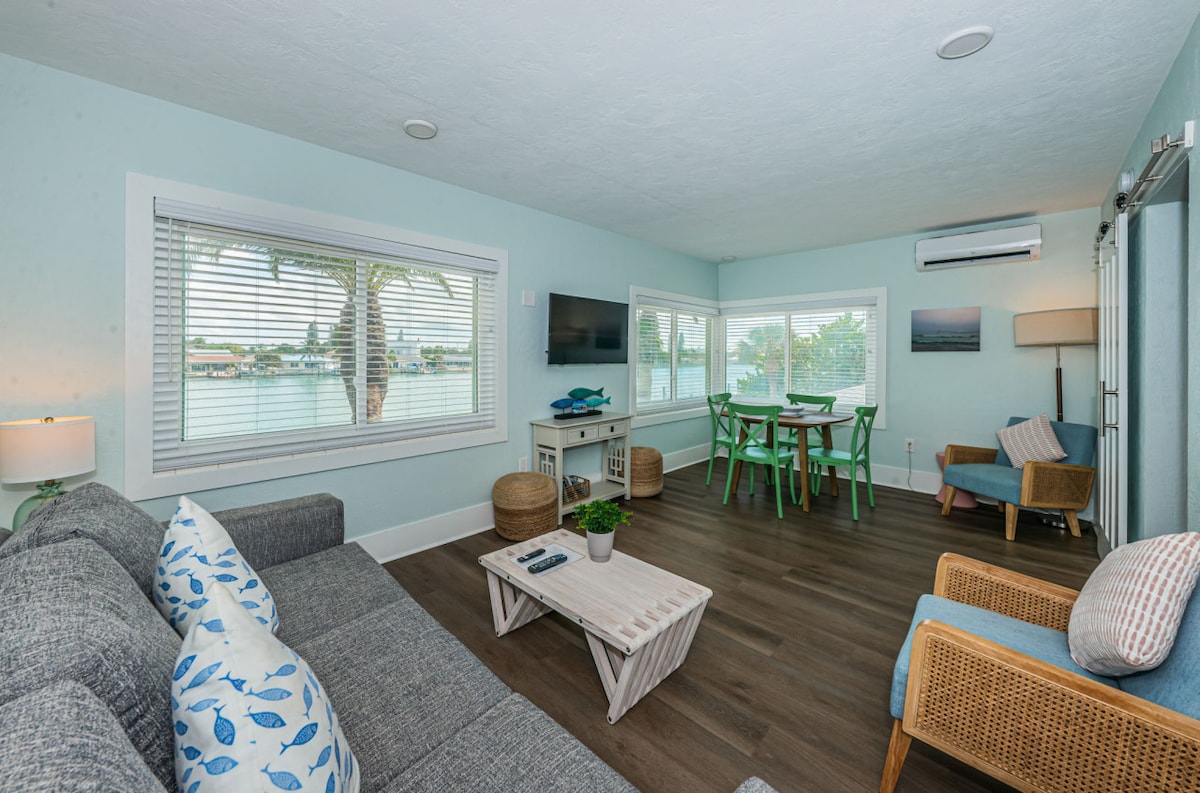 Wake up and watch the dolphins at your kitchen table!! You won’t want to leave this charming, one-of-a-kind place. The Roth Hotel is located on the intercostal water ways of Treasure Island/ Sunset beach FL. One of the largest docks on the island for viewing the boats and marine life. If you like to fish the fishing off the dock is excellent! This Beautiful one bedroom unit with an efficiency is calling your name. A short walk to the beach- aprox 150 yards.
