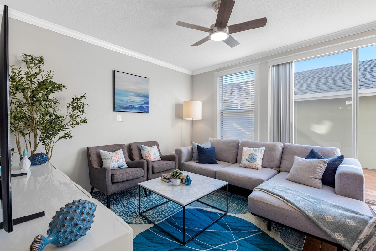 Enjoy semi-private beach access just one block away—a quick 3–5 minute walk from the townhouse—as well as 10+ restaurants, coffee and ice cream shops, boat rentals, parks, playgrounds, a water park, brewery, and nature preserves and trails all within walking distance. Make yourself at home in our cozy three-story townhouse. Spend your days relaxing at the beach, kayaking, exploring local parks and preserves, playing putt putt golf, and more. Our homes are child and infant-friendly!