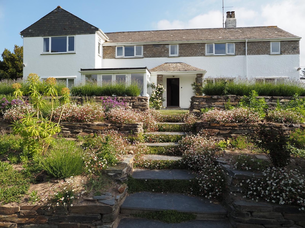 A bright & spacious family home with private garden, 250m walk to Polzeath beach. Apr-Oct, minimum 7 nights, Fri-Fri only. Nov-Mar, minimum 3 nights. Message me for alternatives. The house has a BBQ, smart TV, Ping Pong table, surf boards, books, games and hot outdoor shower. The garden is full of flowers with a south facing deck, perfect for dining outside. It sleeps 7/8 comfortably in 4 rooms. The queen room is small, for one person or cosy up! Summer house (Mar to Oct) can sleep 3.