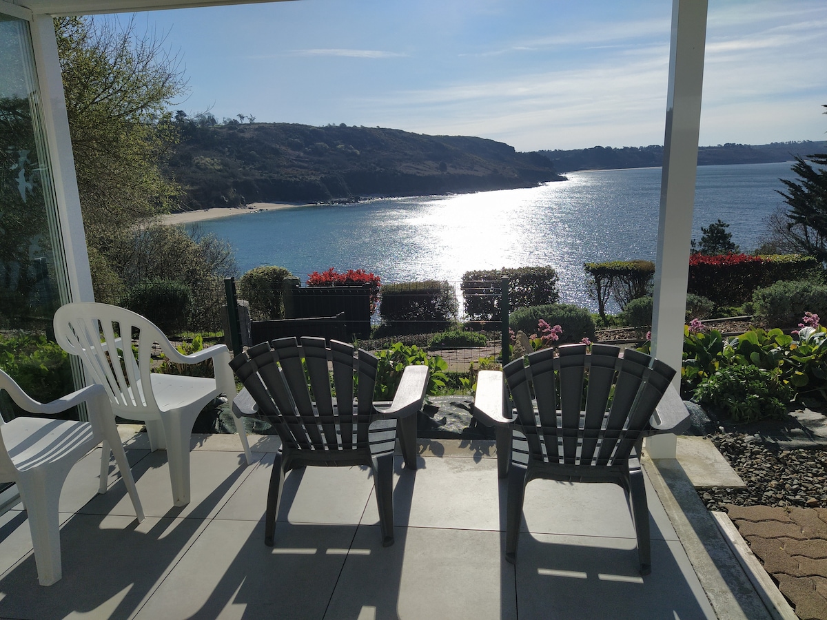 In Trébeurden, pink granite coast, in the most sought after area of Lan Kerellec, close to the beach, you will be in the spacious living room communicating on the terrace as in an aquarium. 3 bedrooms, 2 of which have a sea view. If you come with children, one of the 3 bedrooms will be equipped with 4 single beds. The beach of Roc'h Ascoat is 2 steps from the house. Quiet area, shops, restaurants and beaches of Tresmeur, Goaz Trez and Pors Tremen and marina within walking distance
