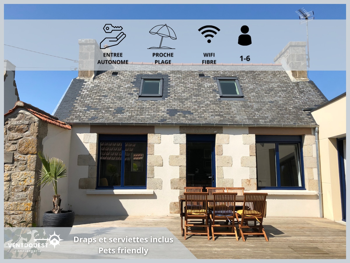 Un havre de paix au cœur d’une nature préservée. Charmante maison de pêcheur composée d'une chambre, rénovée et décorée en 2020 à proximité immédiate de la mer (3 min à pied de la plage sauvage de Nantouar et du GR 34). Logement équipé de matériels et de mobiliers récents de qualité afin de garantir votre confort. L'accès wifi vous permettra également de rester en contact avec vos proches. Possibilité de garer 2 véhicules automobiles dans l’allée de la propriété. Commerces à proximité.
