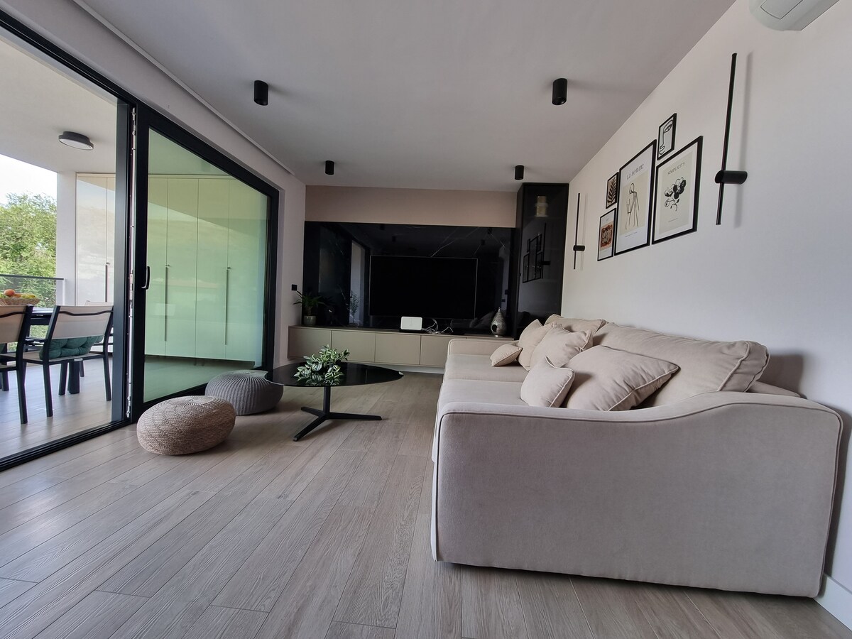 🔹 check-in time 15:00 - 23:30 🔹 check-out time 06 :00- 10:00 Novorenovirani apartman Stella nalazi se na prvom katu privatne Ville . Apartman je oaza prirode i mira gdje možete uživati u potpunoj privatnosti . Na odličnoj lokaciji na samo 20 minuta vožnje automobilom od centra grada i zračne luke . Prostrani dvosoban apartman s zadivljujućim pogledom na more i mir prirode sigurno je mjesto gdje ćete provesti kvalitetan odmor .
